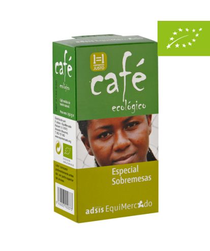 –Café ecológico molido 100% arábica, suave y aromático. Tueste natural. De baja concentración en cafeína, es ideal para las sobremesas o a media tarde.